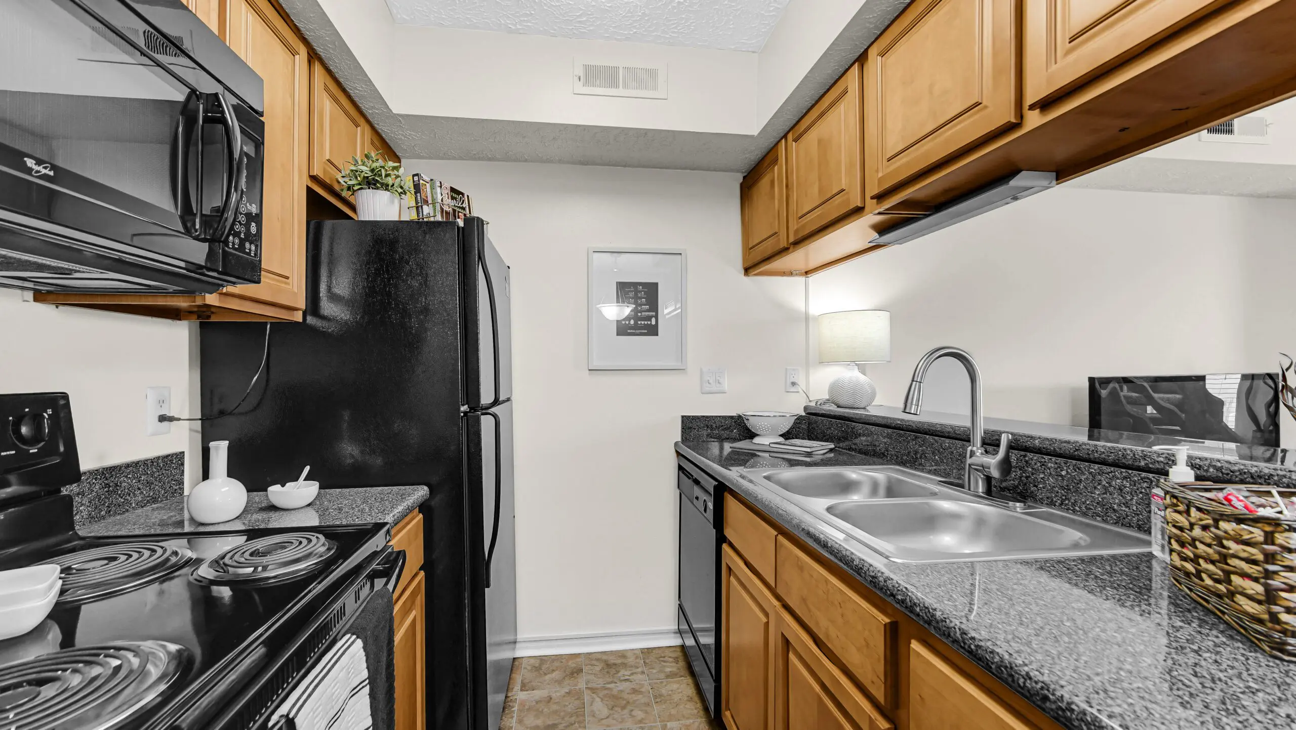 - Fully Equipped Kitchen with Black Whirlpool Appliances & Breakfast Bar